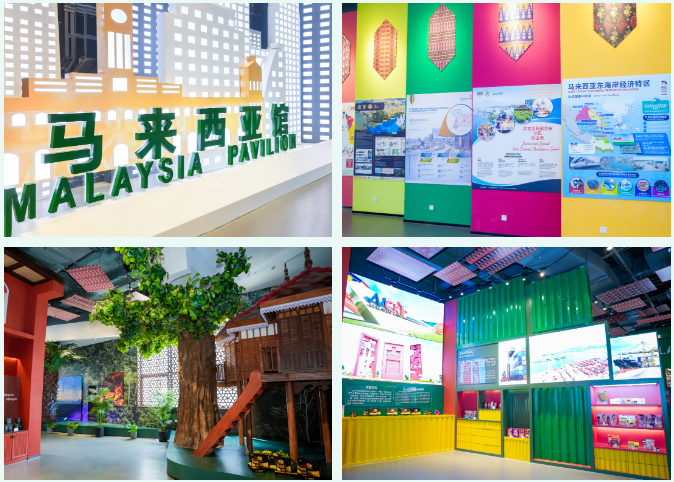 來到馬來西亞館,各類富有當(dāng)?shù)靥厣娜宋娘L(fēng)俗與“僑元素”生動呈現(xiàn):從標(biāo)志性的雙子塔、五大經(jīng)濟(jì)走廊,到傳統(tǒng)巴迪布、高腳屋和榴蓮樹造景,無不喚起代表團(tuán)的熟悉與親切之感。館內(nèi)還陳列了燕窩、巧克力、白咖啡等特色商品,進(jìn)一步增強(qiáng)了實地體驗的氛圍。大家紛紛就館內(nèi)已入駐商品的運營推廣情況,進(jìn)行詳細(xì)的了解和探討。在得知各館均有相應(yīng)館長對商品進(jìn)行管理與推介時,代表團(tuán)更是稱贊連連。