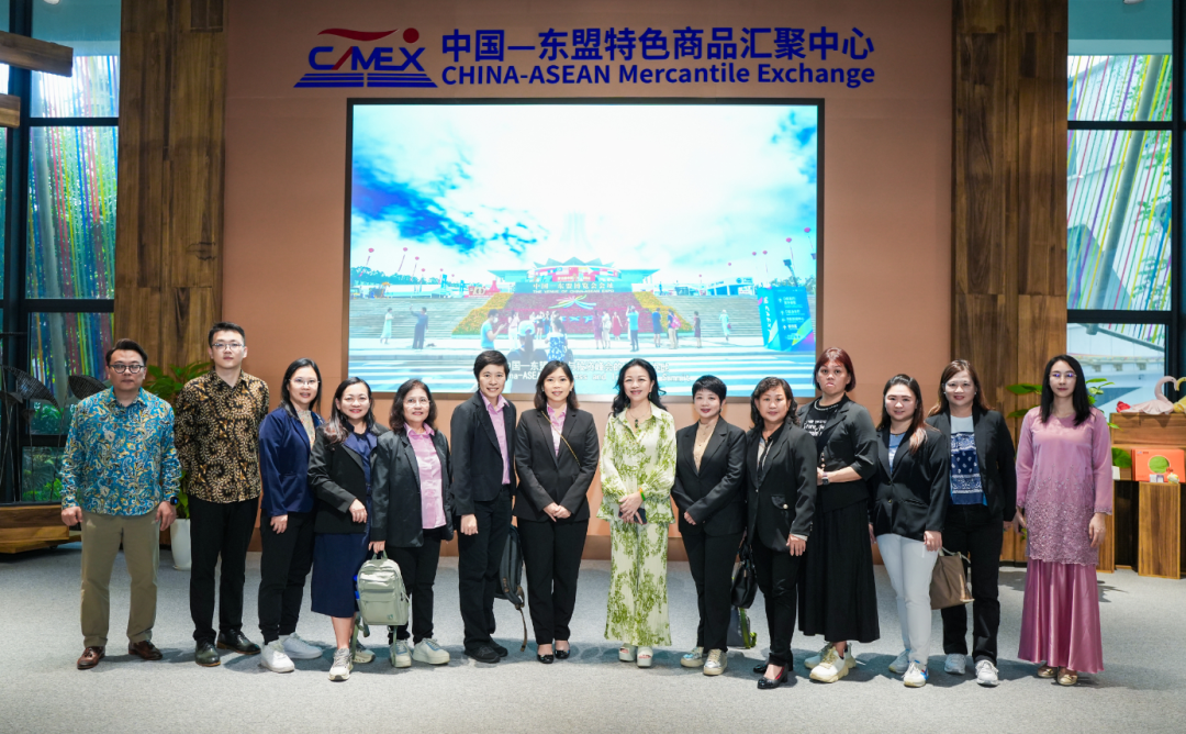 2025年8月27日,馬來西亞中華大會堂總會婦女部主席拿督林火莉率隊到中國—東盟特色商品匯聚中心(簡稱“匯聚中心”)和中國—東盟(南寧)水果交易中心(簡稱“水果交易中心”)參觀考察,尋覓商機(jī)、共話發(fā)展。廣西新中產(chǎn)業(yè)投資有限公司、中國—東盟特色商品匯聚中心董事長趙海燕熱情接待了代表團(tuán)。